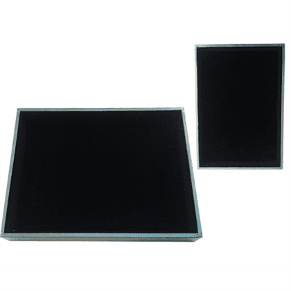 A beautiful way to display your jewelry, or other small and precious merchandise. Plush black velvet covers a padded, sturdy fiberboard form. A satin ribbon loop is attached to one side so that you can easily pull the pad out of your display trays. Fasten items down with u-pins. You also get a jewelry tray designed to hold the velvet pad. Handy-size case, measures:35.5*24.5*4.5cm
