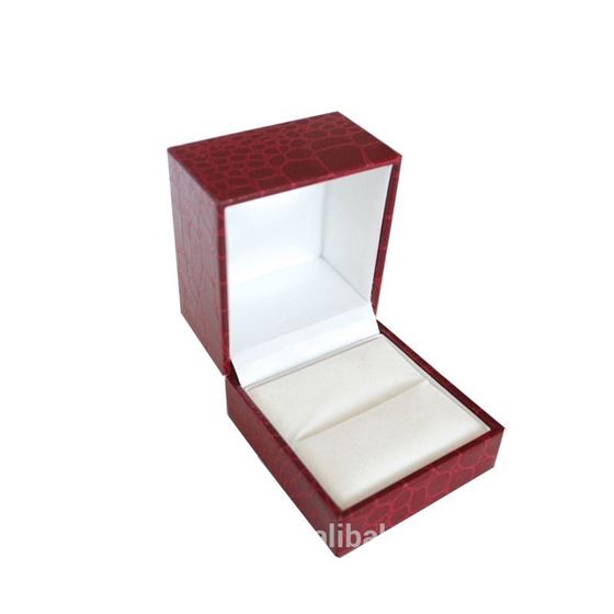 Red leatherette ring box with exterior crocodile skin and smooth white velvet interior with gold cartier braided segments on the exterior, a perfect finishing touch. Available Color: Red/Black