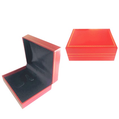 The perfect box to present your gift or showcase your jewelry in. This 8×10 red leatherrete hand made box has a smooth black velvet interior and gold cartier braded segments on the exterior.Packaged in a white cardbord box.