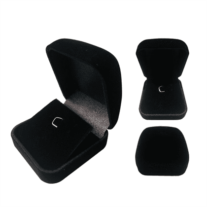 Luxury velvet earring and necklace box. Matching color velvet insert with flap cut for earrings and hook for necklace. Hinged lid with white satin lining. Size approx – 55mm wide x 60mm long x 36mm deep. Quality velvet box. Jewellery not included.