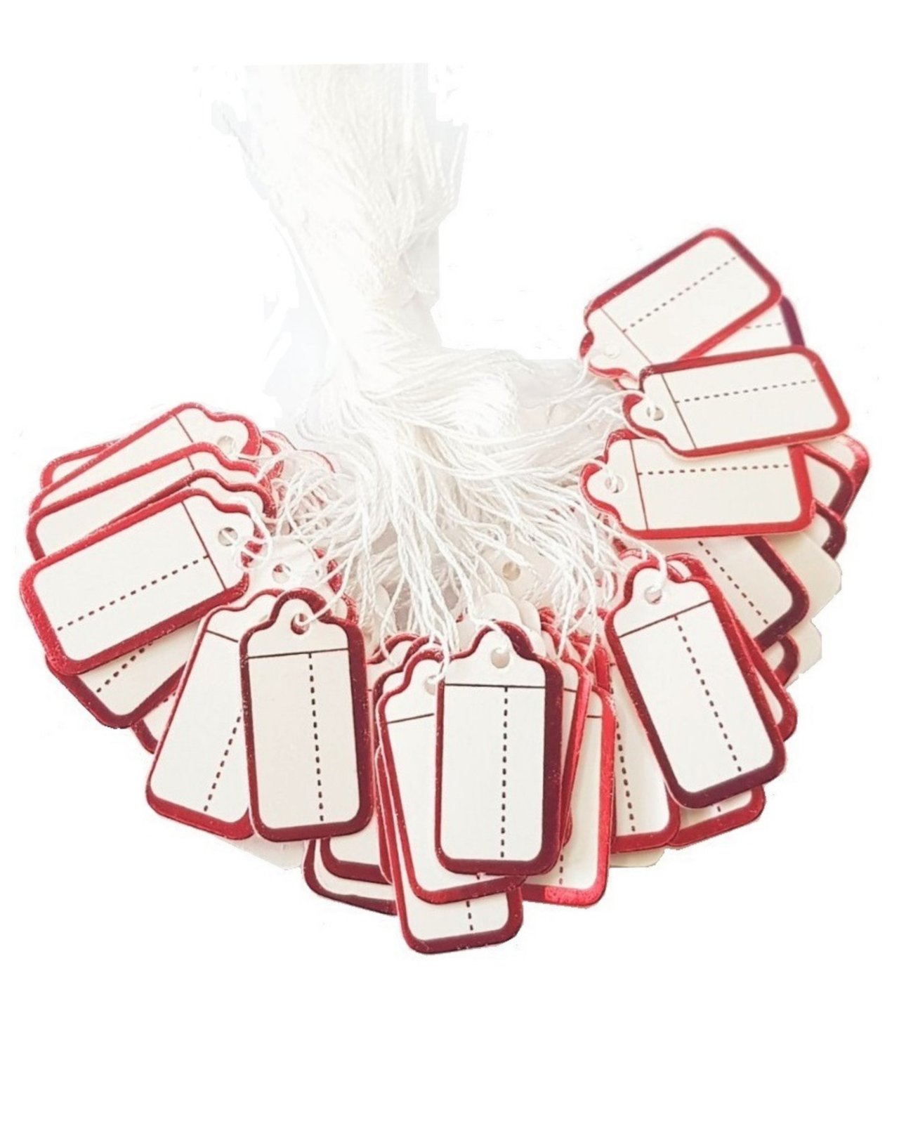 Brand new and high quality.These price tags are attached with a white string for tie-on use. A staple item for any beaders jewelers and watch retail & repair business. All of these tags are durable and can be written upon without smearing or smudging.