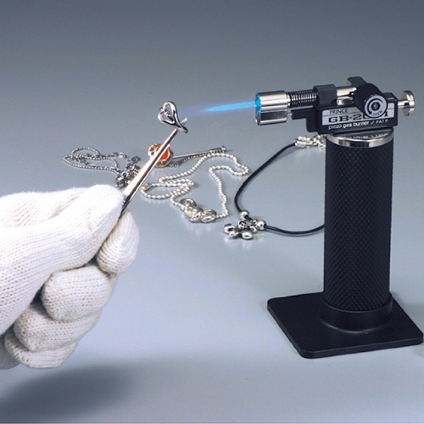 The Prince GB-2001 hand-held butane refillable micro torch featuring the state-of-the-art Piezo Quartz Crystal Electronic instant ignition.The GB 2001 features a powerful 2500ºF butane blue torch flame and air flow adjustment dial for superior flame control with pin point accuracy at your finger tips.The main tank body features a diamond grid design for a superior, and extra safe, grip.The GB2001 also includes a detachable base for hands free table-top work.