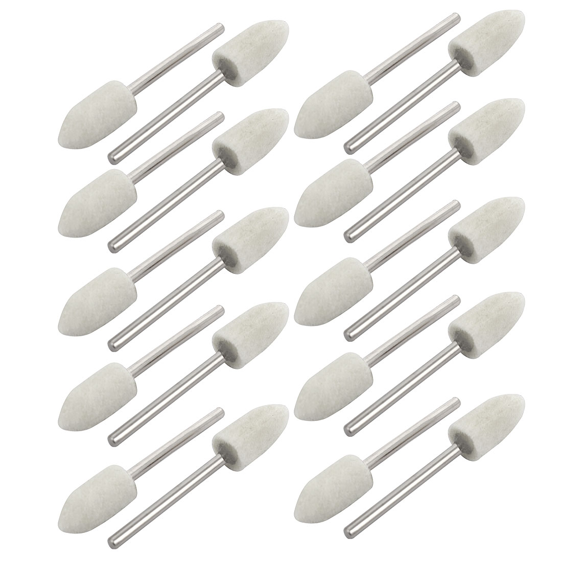 Mandrel mounted white felt head. Mounted Cotton Buffs, Polishing Tool, Fit Rotay Tools Grinder. Suitable for polishing and buffing jewelry, soft metal, wood, plastic, etc. Can be used with electric drills, electric grinders or other rotary tools.