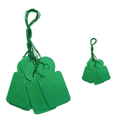 Tag with green thread isolated on green background. Use for organizing, labeling or pricing. Made of heavy weight white quality paper. Pack of 500pcs.