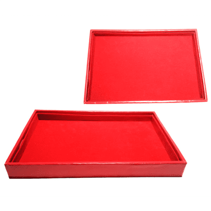 A beautiful way to display your jewelry, or other small and precious merchandise. Plush red velvet covers a padded, sturdy fiberboard form. A satin ribbon loop is attached to one side so that you can easily pull the pad out of your display trays. Fasten items down with u-pins. You also get a jewelry tray designed to hold the velvet pad. Handy-size case, measures:27.9*18*3cm