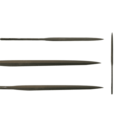 Files have a very slim triangle shape to them. Nice to use when you need to get into sharp corners. Used for metal work, jewelry making, ring construction, wax carving and watch repair, jewelry repair, lost wax casting, designing jewelry, etc
