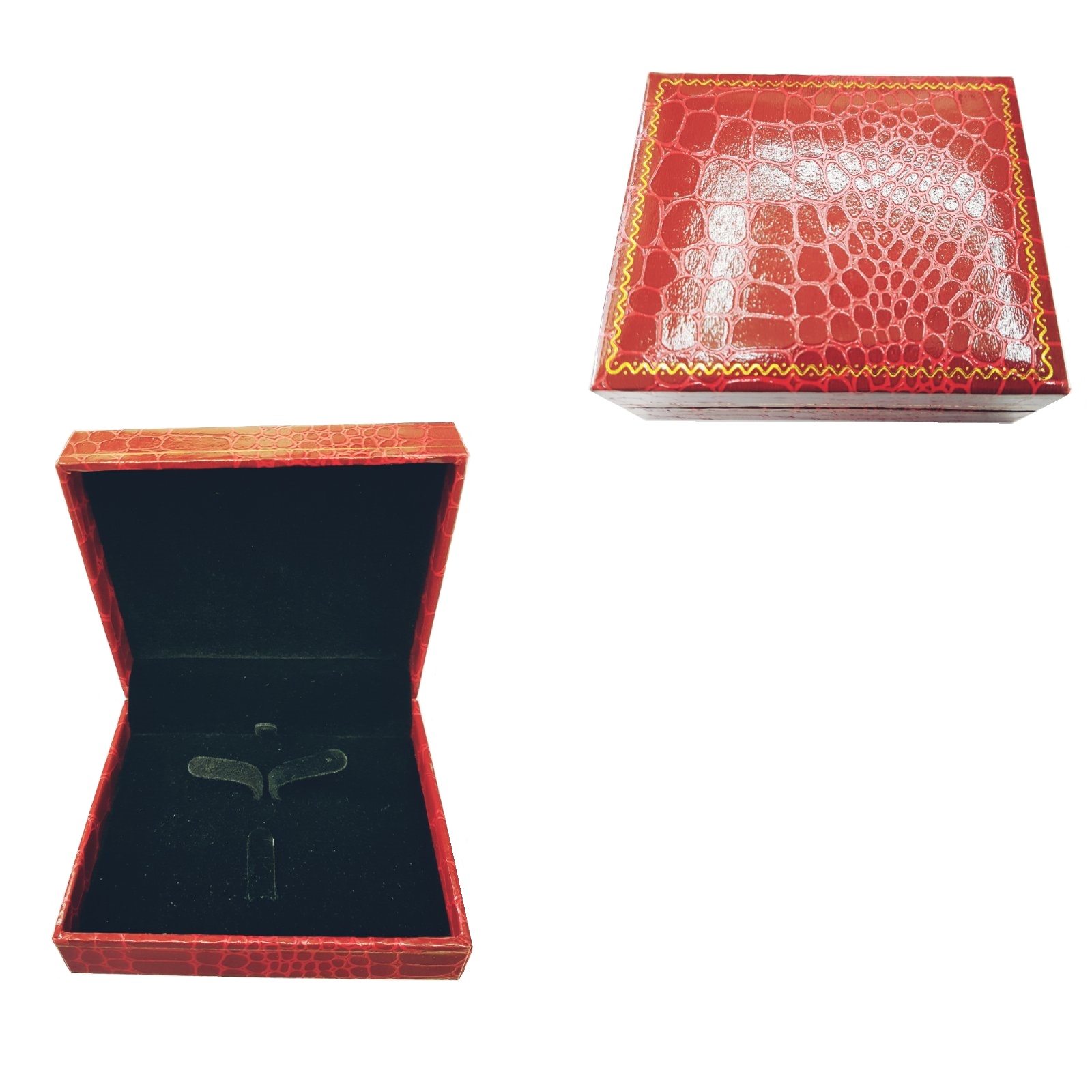 This red leatherette set box with exterior crocodile skin and smooth black velvet interior, and gold Cartier braided segments on the exterior for that finishing touch. Size approx. 8.3*10.3*3.7cm