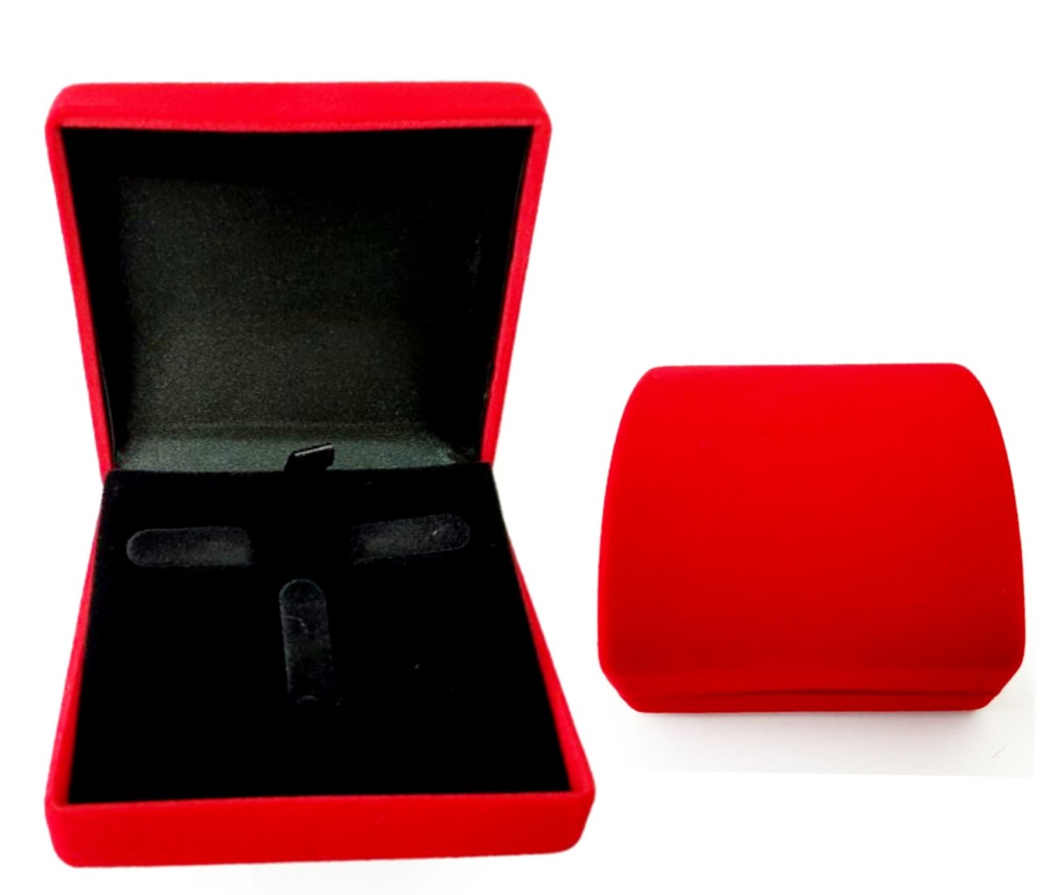 This elegant red velvet set gift box has mounting space for a necklace, a set of earrings and ring add a touch of beauty to your jewelry. . They are great gifts ,boxes are lined throughout with red velvet and a black velvet inside the top cover for a beautiful presentation of any jewelry piece. This jewelry box is durable with plastic hinges for smooth opening and closing.