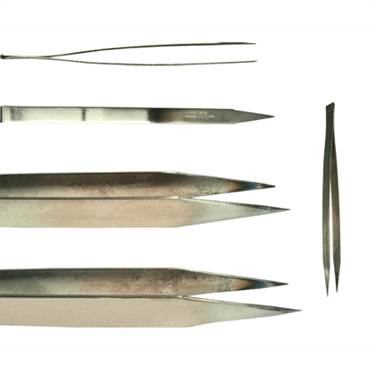 Manufactured from stainless AA steel. General purpose tweezers with finely ground points and bevelled edges. Ideal for jewelry, watchmaking, craft and card making, model making, etc.