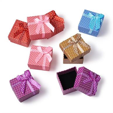 Cardboard ring box, square, with ribbon bowknot decoration, more colors for choice. Size approx.5*5*3.5cm Noted: Actual design may different in actual