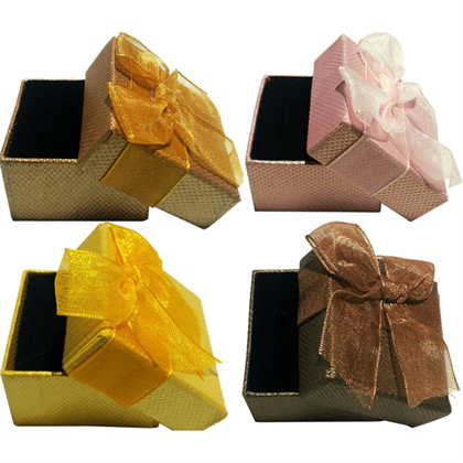 Cardboard ring box, with etamine, square, with ribbon bowknot decoration, more colors for choice, 5x5x3.5cm.