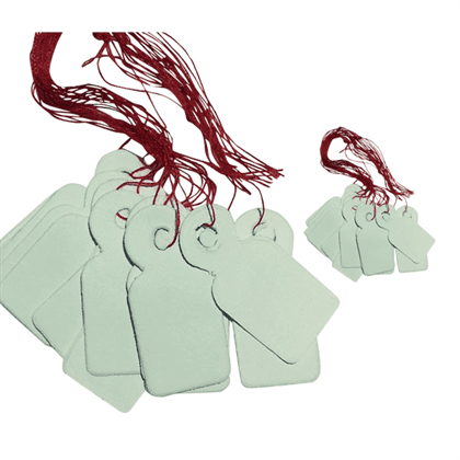 Tag with red thread isolated on white background. Use for organizing, labeling or pricing made of heavy weight white quality paper. Box of 500 approx.