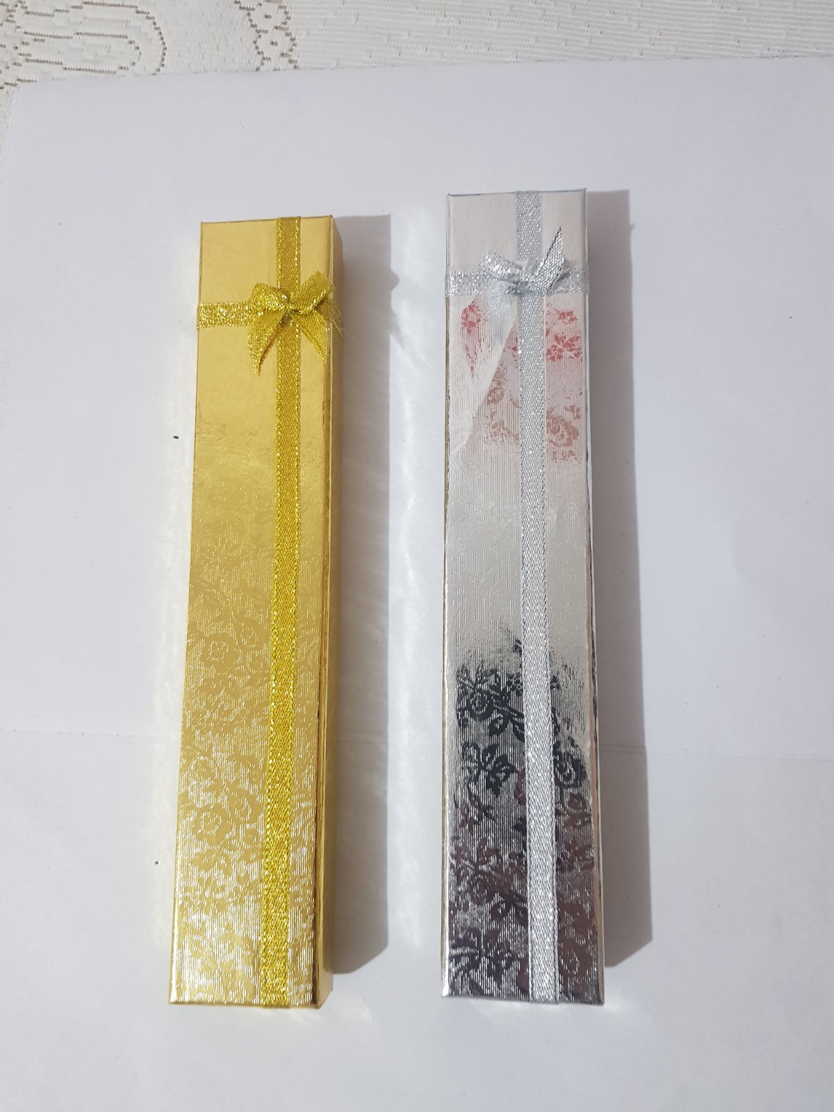 For bracelet, necklace and watch box. Assoretd colors stand up with silver design.
