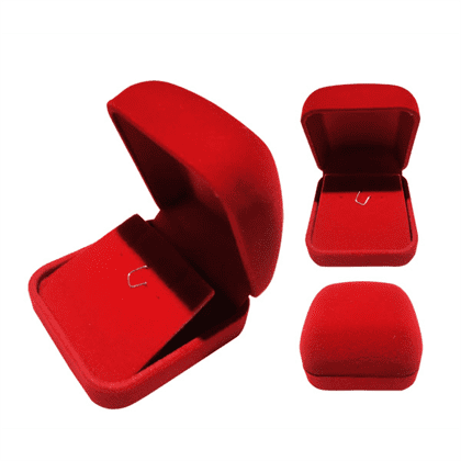 Luxury velvet earring and necklace box. Matching color velvet insert with flap cut for earrings and hook for necklace. Hinged lid with white satin lining. Size approx – 55mm wide x 60mm long x 36mm deep. Quality velvet box. Jewellery not included.