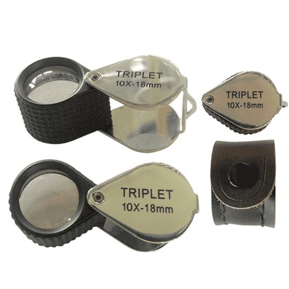 New 10x hexagonal eye loupe. This is a new 10x hexagonal loupe. It is made of optical glass with a swing-away chrome plated case. This has become the standard style of loupe used in the watch making industry and is excellent for any application where magnification is needed In terms of performance, it is second to none. It is 10x power. The lens has an 18 mm diameter. It has a focal distance of 1″ (25 mm).