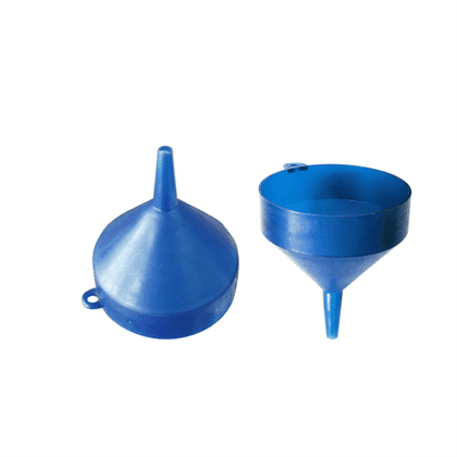 Funnels are usually made of stainless steel, aluminium, glass, or plastic. The material used in its construction should be sturdy enough to withstand the weight of the substance being transferred, and it should not react with the substance.